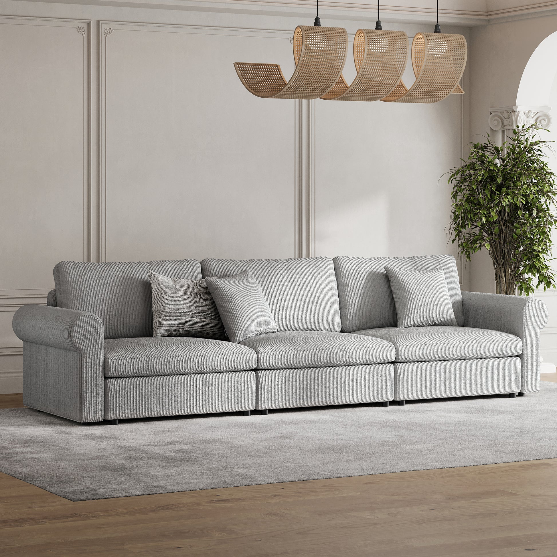 3-Seater Dove Grey Corduroy Modular Sofa with Deep Seat