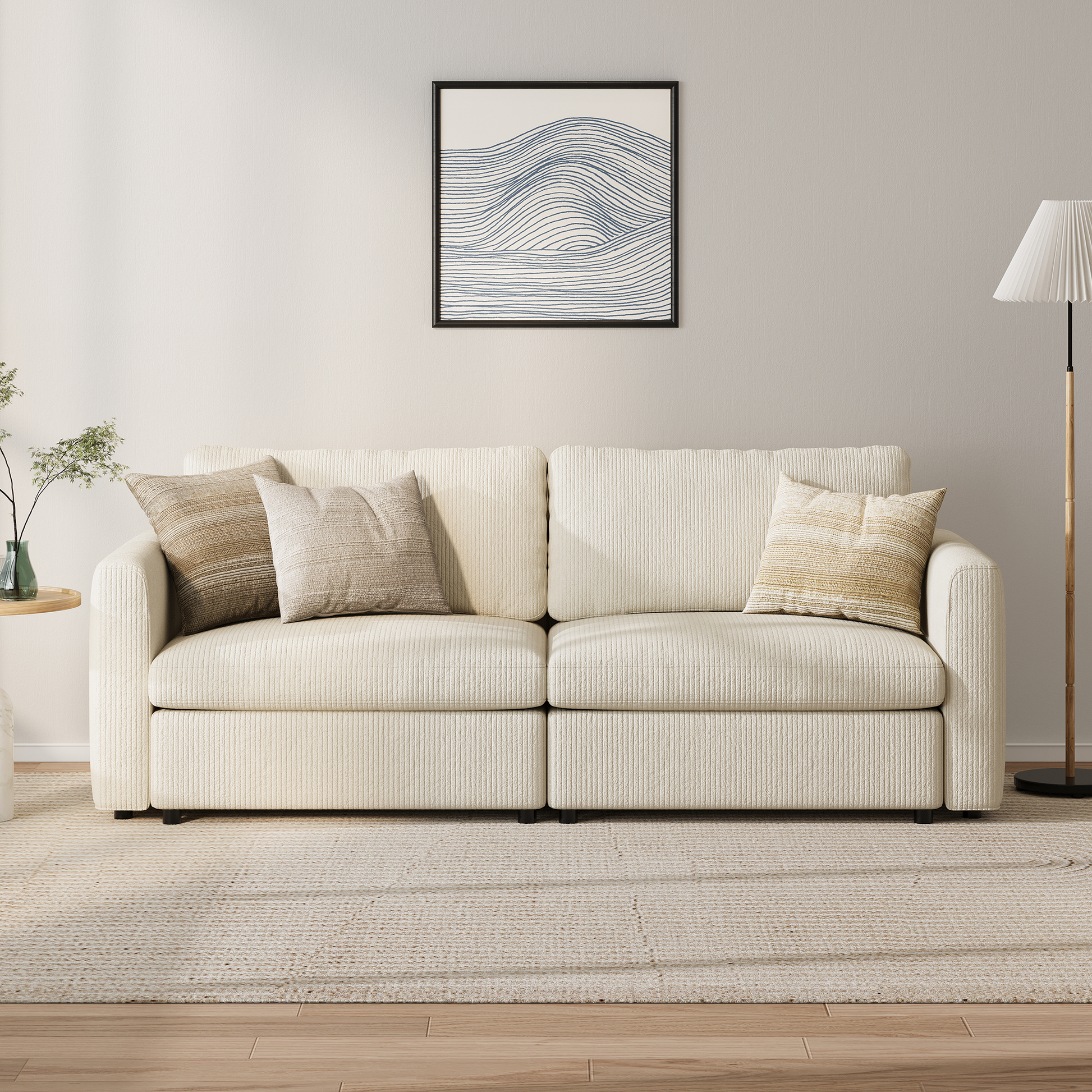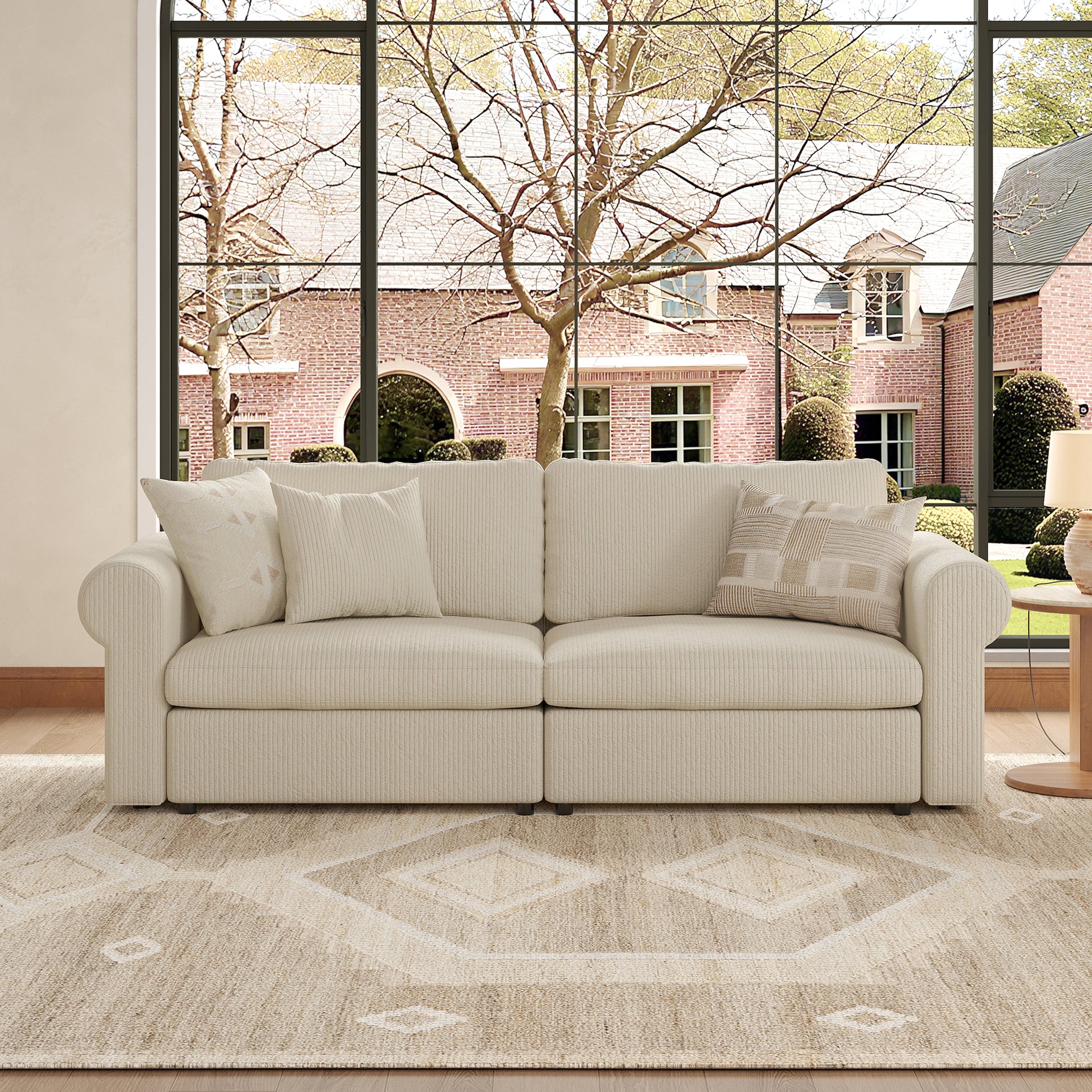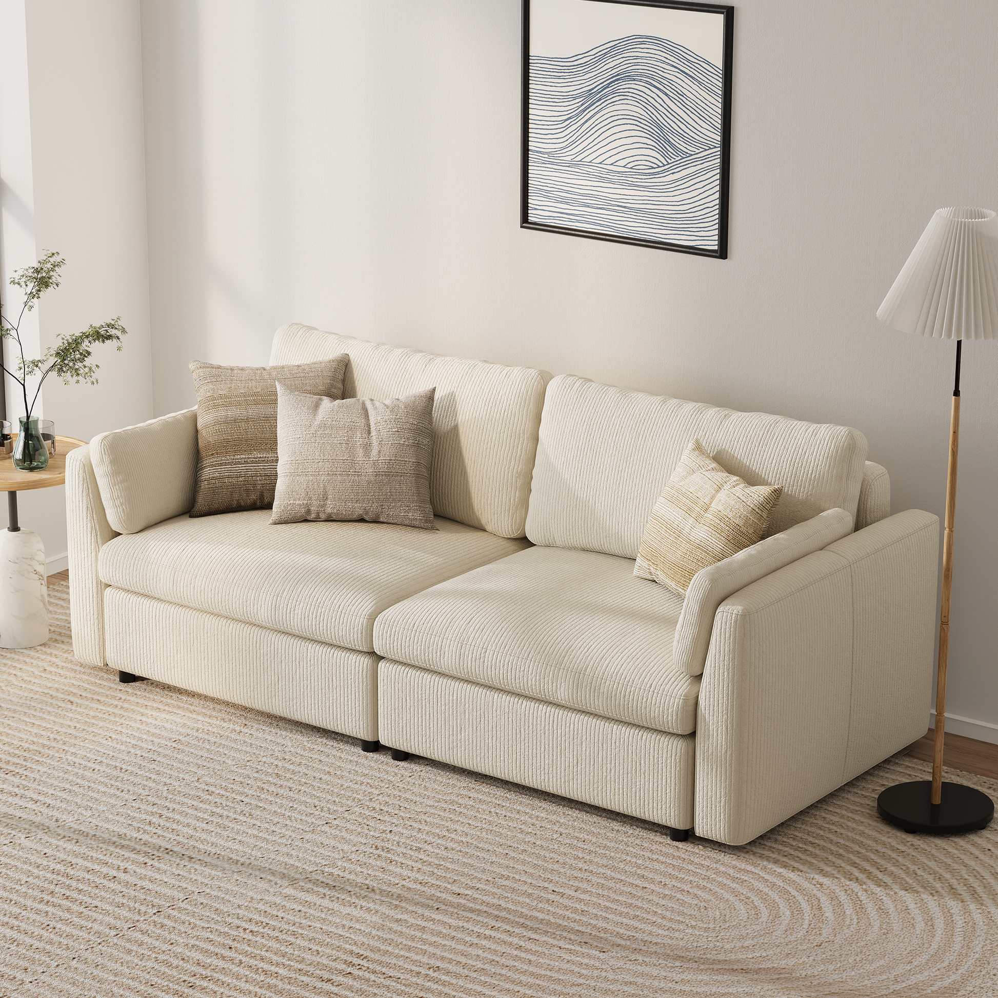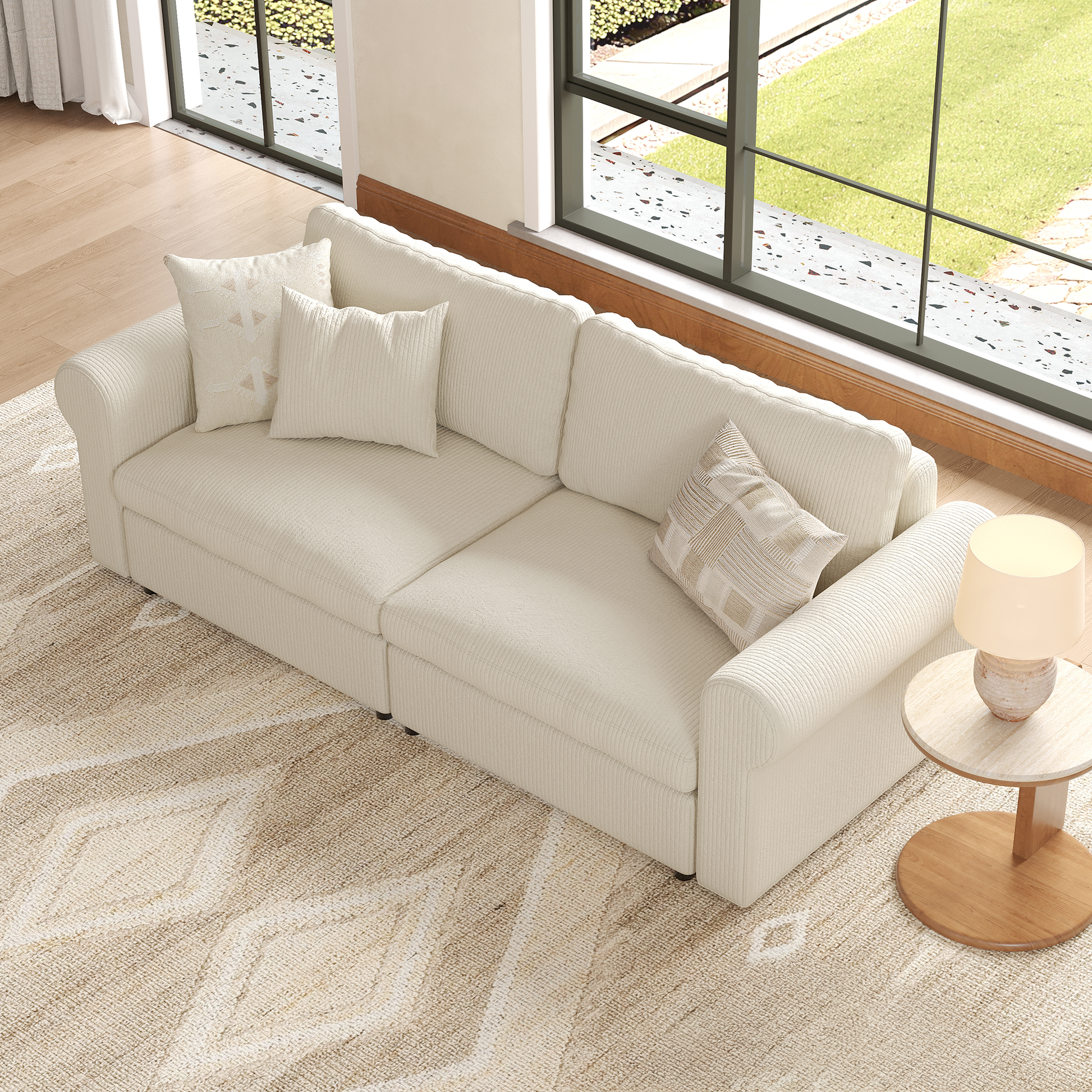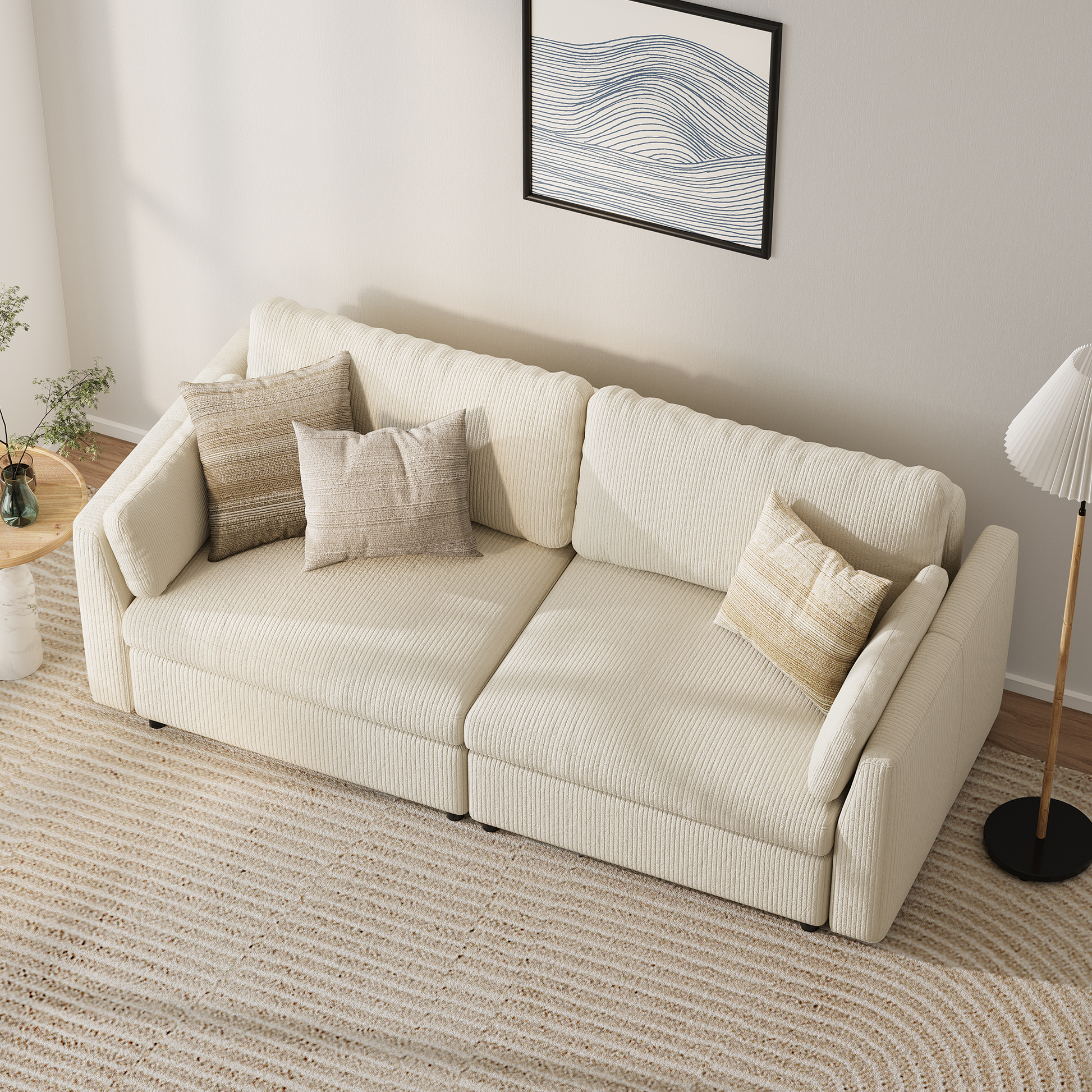 2-Seater Cream Corduroy Modular Sofa with Deep Seat